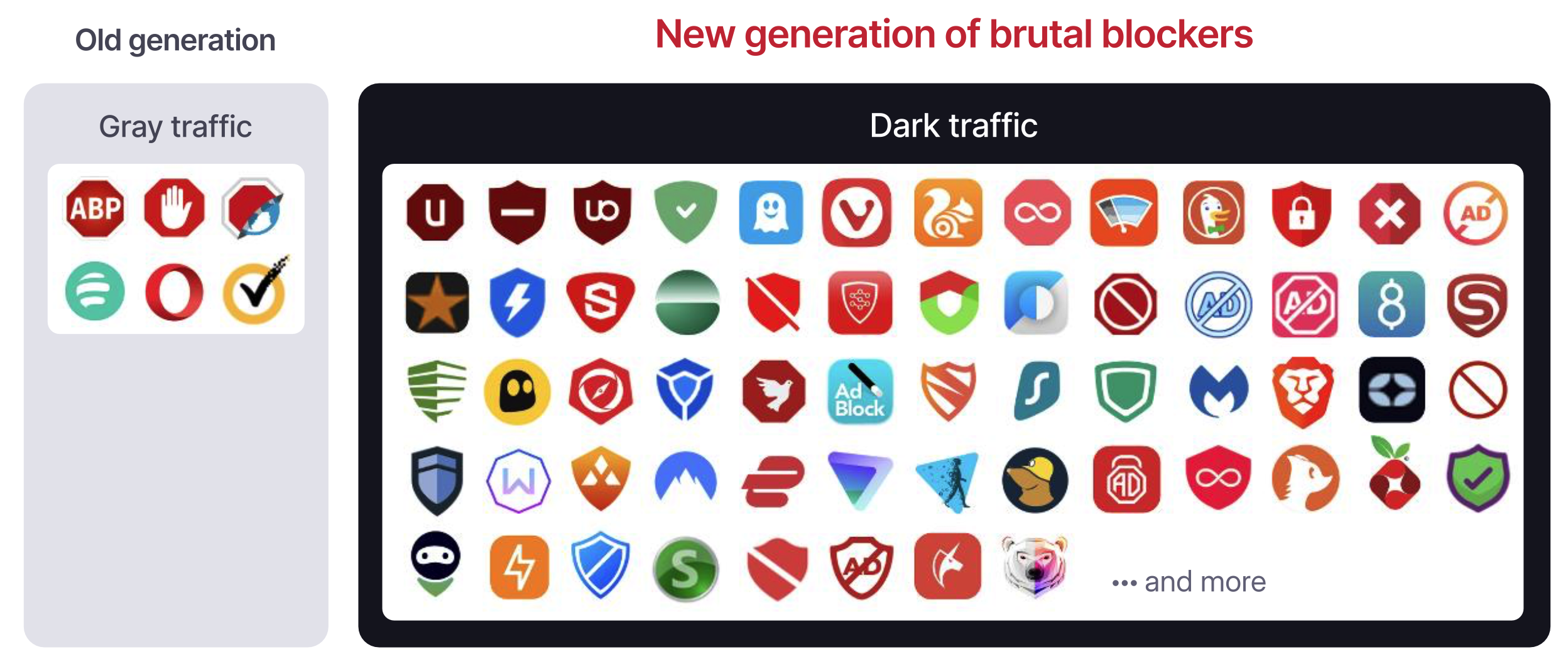 💡 Dark traffic: unmeasured and monetized adblocking traffic.
